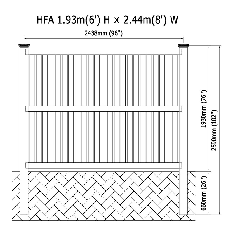 Stojąc na standardowej wysokości 72 cali, z konfigurowalnymi opcjami dla różnych wysokości, ogrodzenie tworzy zachęcającą barierę, jednocześnie umożliwiając przepływ światła i powietrza. Każdy panel ma standardową szerokość 96 cali, ale oferujemy również różne opcje szerokości, aby pasowały do twoich unikalnych potrzeb.
